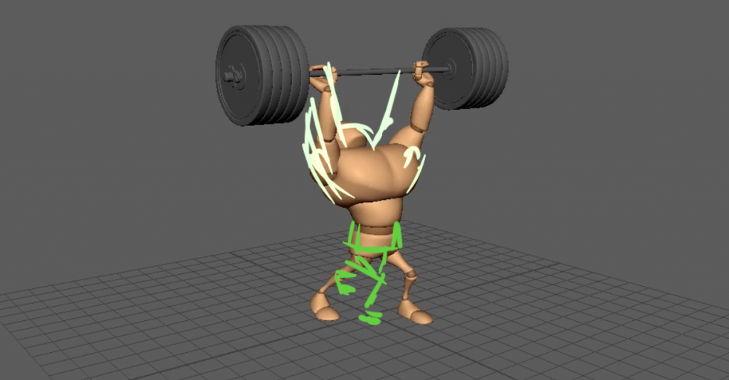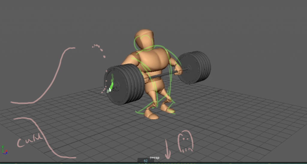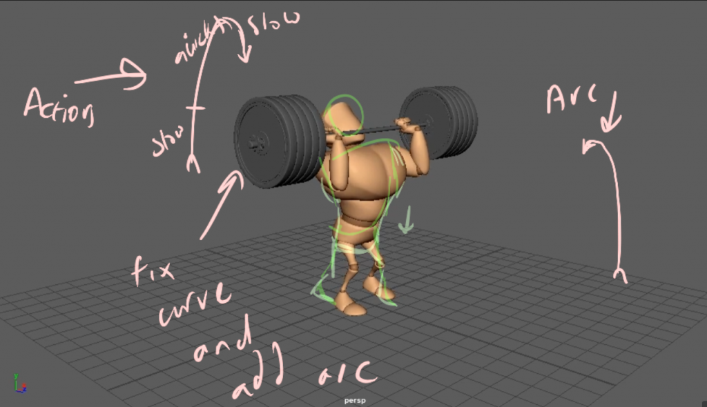 The most challenging part of this animation is when lifting the dumbbell – it requires a smooth in and out motion, and precise control of timing and spacing.