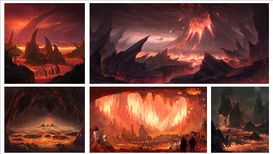 My initial idea was elements from the Song of Ice and Fire, volcanoes and snowy mountains, fight scenes in the middle of lava caves, snow at the beginning and end.