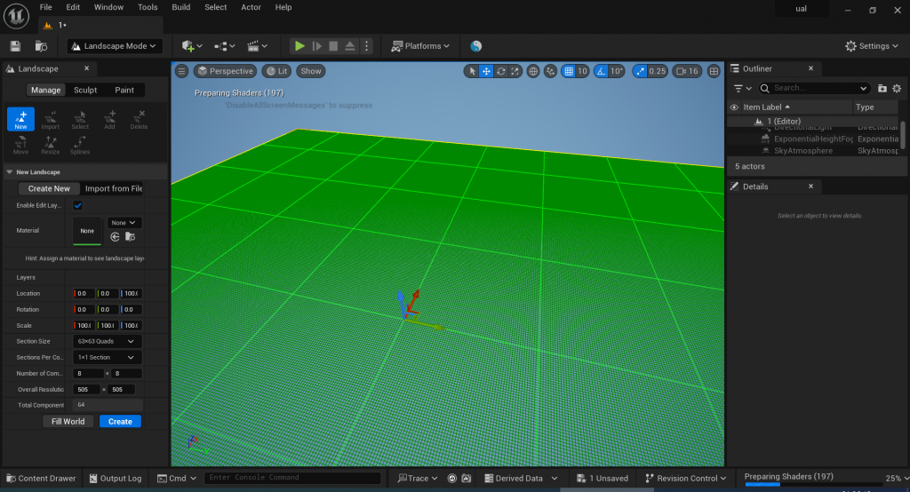 The ue5 creates worlds and new levels. Each scene takes place in a specific level with atmospheric systems and ground as well as light sources and altitude index fog.